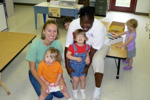 The teacher holding Little is Mrs. Debra and Mrs. Shannon is to the left.