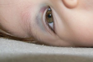 Honey thinks what happened (and I feel certain he is right) is that Bubba took the car book for “his turn” and Little went to pull it back. Struggle ensued and the book popped up and the corner hit Little’s eye. By the time Honey got home from the office (5 min. max) the swelling had shifted into a nice flat swell that left her lid half closed but not half as terrifying. Mommy felt like a dope. Bubba was in his room playing with cars and Little was repeating “French fries will make me better.” (We had a frozen bag of fries on her eye). Honey was not amused as he had just broken the sound barrier to get home thinking he was going to find an ambulance and impending death. Sorry Honey.