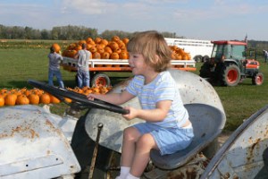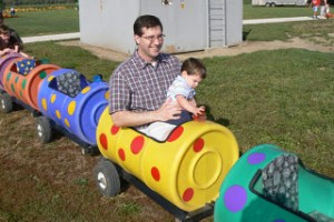 We had never been to this patch before and really enjoyed the variety. My friend Debbie was here visitng and went along. Little considers Mrs. Ertel her new best friend and alternated between holding her hand, giving her “friendly hugs” (where did she get that?), and reading her a truck book all weekend. This connection may have really been sealed on the “train” ride through the fields of “pumpakins”.