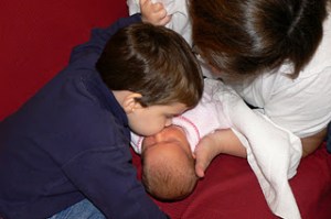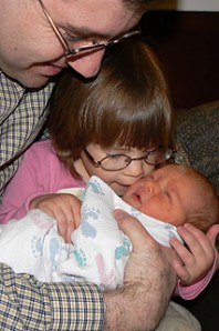 What a sweet family! Great pictures! Sounds like KB is being welcomed into the family by Little and Bubba quite nicely :). My girls all had their days and nights mixed up for the 1st few days. I don’t remember exactly how I handled it, other than to keep them awake as much as possible during the day–particularly to wake them up to feed every 2 1/2 to 3 hours and then let them sleep as long as they can without waking them up at night. I know it is easier said than done :). I cried many times when my girls just wouldn’t wake up–especially when I was so tired!I will pray that KB adjusts very soon.
