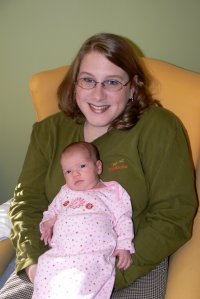 My friend Erika said I needed more photos of KB’s face. Yes, this has her name on it but I just had to post it. My dear friend Mo sent this to KB – it is sooooo soft and pretty. The outfit is from Memom and is one of few that fit her LITTLE body. (Comparatively little, that is. She just broke 9 pounds but her siblings were all born over 9.5)