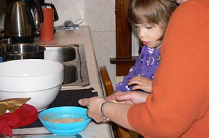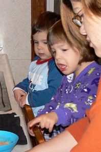 So then there was Thanksgiving. We had a nice morning with the kids making “Bye Bye Biscuits” for breakfast. Lily helped wrap the marshmallows in the dough and was amazed that there was no marshmallow when she bit into her cooked biscuit.