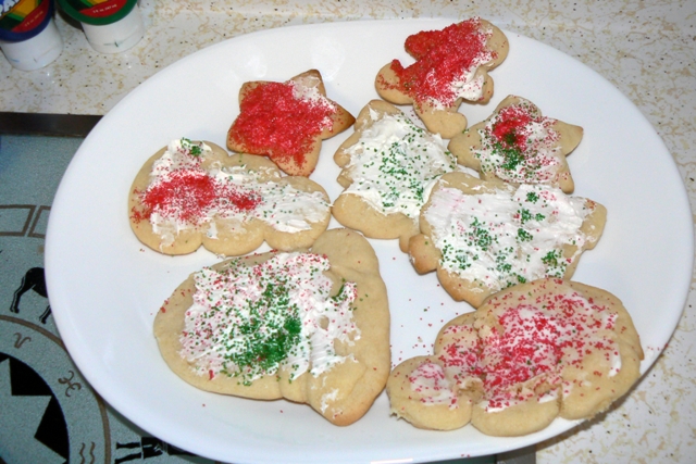 When I was five or so, my grandmother came to visit and we made Christmas cookies. I remember sitting around the kitchen table, that is now on my back porch, with bowls of sprinkles and candies to decorate the sugar cookies I had cut out myself. When all was said and done, I remember telling my grandma that I had the BEST time and that I wanted to do it again. She laughed and told me she was glad I had fun. For years after that, I remember hearing her tell that story and saying that she was so tired after making those cookies with me that she thought she would never be able to LOOK at a sugar cookie again, much less decorate them with a grandchild. I can relate to my grandmother in a way I never thought I would!