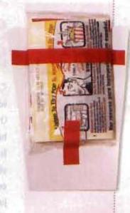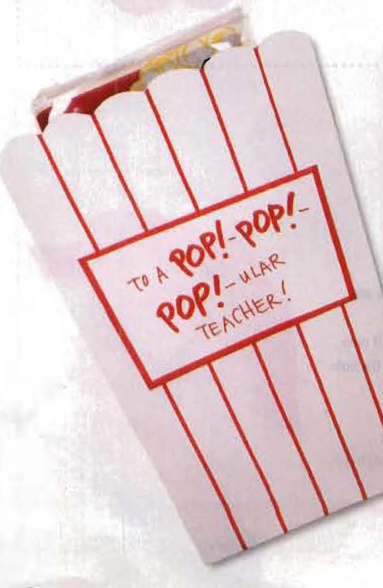 Cut a popcorn-box shape (ours is Binches tall and 6 inches across at the top -to try our template. see page 57) and a smaller rectangle for a label from the card stock.