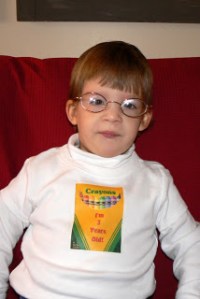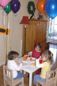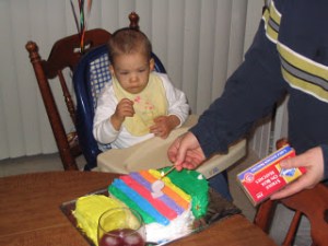 Third birthday was crayons. We had crayon cakes and friends actually came to a party where we wore our favorite color and traced our bodies and colored them. Good times. (Can you tell I have as much fun planning it as anything? I have an idea for a business called “Birthdays in a Box” or something where I can just plan different birthday partys, put together all you need to pull it off, and then hand it over for you to throw the party. Anywho, I digress. . . )