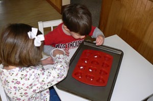 Still, I dove in to this crayon endeavor ’cause Lauren did it with her kids so it must work. There are four easy steps listed that one must follow to reach the desired result of perfectly color proportioned heart shaped crayons. After having completed the morning of crayon making bliss, I would write the directions to look more like this: