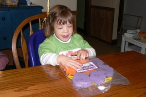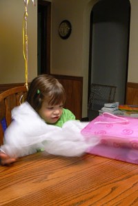 Since Christmas, Little has really been into opening gifts. She loves to rip the paper. Tonight I loved watching her. She had to concentrate so hard to get her fingers to do what she wanted and the look of joy on her face as she saw what was in each package was so fun. Then she would whisper a “Thank you” that was so sincere it made my eyes tear and heart swell. True gratitude, baby! So, she can’t write a thank you note yet, but folks, know that she is so thankful!