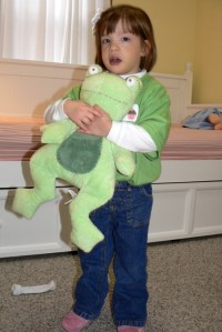 Another birthday tradition is to take each child’s photo with their special object. During her first year of life, Little had her picture taken with Mr. Frog every month and since 1 yr. we have done it on her birthday. It is a fun way to see how much she has grown in a year.