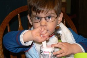 SERIOUSLY, Bubba was alternating hands and utensils. His right had has a fork in it and his left the spoon. Both were working the yogurt at dinner!