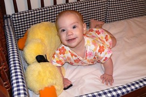 As I have mention before, we take photos of the kids with a carefully chosen something every month for the first year and then on each birthday after that. The plan is to do this until I take a picture of each kid in wedding attire holding their frog, car, or duck (respectively).