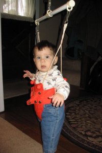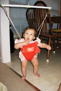 Back before there was the fancy “Johnny Jump-up” of today, there was this – the ugly orange jumper and tbar! Yes, this was my sisters which means it is 30+ years old – – – and still kickin‘ it, just like my sister. All of my children have had the pleasure of jumping in the door frame strapped into this ugly orange jumping contraption – – and each one liked it better than there fancy jumping contraption at home!!