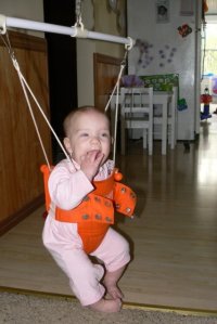Back before there was the fancy “Johnny Jump-up” of today, there was this – the ugly orange jumper and tbar! Yes, this was my sisters which means it is 30+ years old – – – and still kickin‘ it, just like my sister. All of my children have had the pleasure of jumping in the door frame strapped into this ugly orange jumping contraption – – and each one liked it better than there fancy jumping contraption at home!!