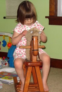 I sold the rocking horse on Craig’s list this week. I bought it at a yard sale over three years ago and it has been ridden only a handful of times since the purchase. Over half of that handful was in the three days the horse was listed online! What’s with that? It’s like with haircuts: you decide to get it cut, make the appointment, and the day you are to get it done EVERYONE you see (including some lady at the grocery) comments on how great your haircut is. Anyway, I took photos of the kids riding “the neigh neigh” as they used to call it (from a distance) so that they could remember that time they rode it.