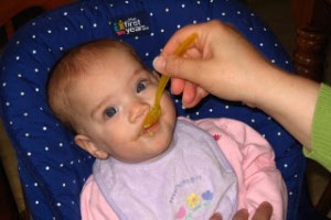 KB is finally eating solids. Stubborn little thing just wouldn’t do it at first. NOW she is a little piggy about it and all smiles.