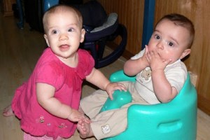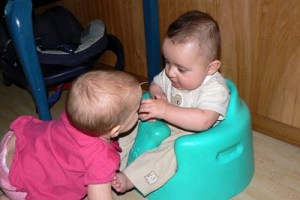 Then friends from school stopped by on their way home from vacation. Our home was a perfect stopping point for stretching legs and filling stomachs. Baby Will was born just 8 weeks after KB (all of our children are separated by mere months) and so Nicole and I had fun swapping baby stories, talking scrapbooks, and laughing. Kermit and Honey talked serious stuff (Ironman reviews and theology) and the kids played. It was so great to have them here. 6 kids under five in one house is A LOT of commotion, but time well spent indeed. Can’t believe the only pictures I got were these of KB and Will getting their flirt on. (I don’t know where she gets that.)