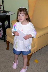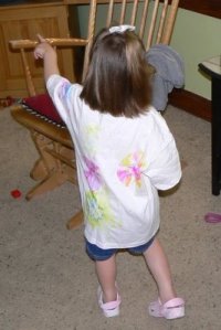 Here’s Little showing off her photo album, kaleidoscope, and tshirt. You can’t hear her, of course, but she’s also saying, “I maded it myself! I maded it myself!”