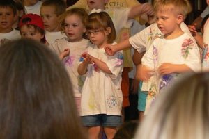 The week culminated in a dinner on Friday night and a “Power Lab Explosion” where we met the “characters” who helped teach our kids throughout the week and heard the children sing several of their songs. My Little stood up there and SANG and also SIGNED in the right places. Such a differences from just Christmas where she had only mastered the standing part!! I cried and prayed thanks to Jesus while my baby signed and sang, “Come to Jesus.”