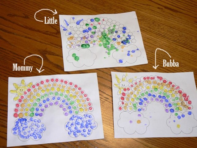Bubba watched me do mine, asked, “More rainbow, please” and then did his very purposefully. It was cute . . . and scary.