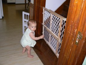 I hate to admit it, but Clip fell down the steps months ago (only once…now I know!) And we have two sets of steps in our house and you can’t put a gate on the top or bottom (without drilling into the wood, which we are not inclined to do) so I spend HOURS of my day keeping Clip away from the stairs. I’m so glad you can put up a gate and hopefully that will solve the problem! >~annie
