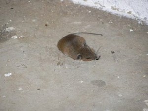 Having seen cats (and ya know we had them) drag dead moles onto the back patio growing up, I feel rather sure you have a mouse. Also having seen WAY more than my share of mice in the state of KY, I feel really rather sure that you have a mouse. Also having seen your blog makes me NOT want to see your blog today. Niiiiiicccce. (How’s that for some Trey R. from T-roy!) M