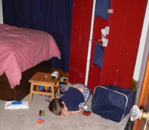 Only once, that is, until the big Birthday Boy Weekend! That’s right, folks, turning 3 must really take it out of a guys because after hearing Bubba playing in his room for an hour, all went quiet. And when I went to “let him out” of room time, I found this: