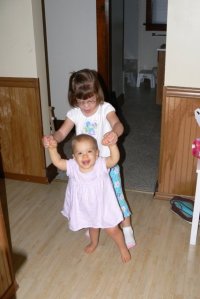 Little is a VERY good big sister – I think that’s what she is saying as I took this photo, “I am a good big sister. I am helping her. I am helping KB to walk.” I, the mother, LOVE this photo.