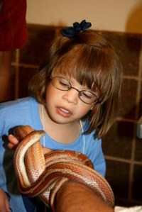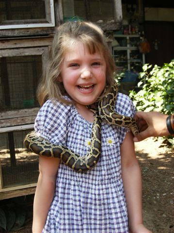 When I showed this photo to my sister-in-law, she passed on a photo of my niece and a “similar” story. Abs couldn’t WAIT to get this guy wrapped around her shoulders. To quote Brooke, “She totally wanted to do it and was scared out of her mind. Just screamed and shook the whole time and then was high off adrenaline for a week.” Now THAT’s the response one would hope for expect!!