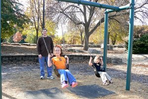 Honey heads off for the slides with the “big” kids.