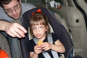My mom used to never let us eat in the car…not even one fry! So I love it too! And AC has eaten nuggets and fries in the car on a few occasions too.