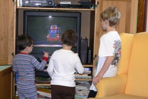 My doctor recently reminded me that kids don’t get 20/20 vision until about 2nd grade. That is why they don’t do board work until then. I wonder if Little and Bubba stand close to the tv because they had trouble seeing it before glasses and surgery. Now maybe it is a habit. Our tv is up in a space above our fireplace. I was wondering if it is hard for my kids to see all the way up there. It is a good bit farther away than it has been in other houses. It doesn’t seem to slow them down in terms of their desire to have it on, though.
