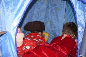 There was a little movement from my children. Little came out of her tent long enough to join KB in Bubba’s tent. (mommy knows best)