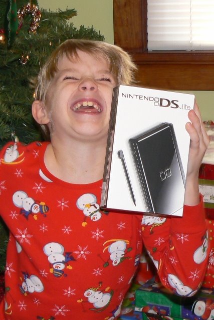 My nephew didn’t have quite as hard a time waiting – he was given a NintendoDS. Can you tell he was excited?