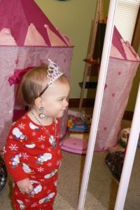 We finally brought in a mirror for her to see herself. She lit up. This could be trouble in our future.