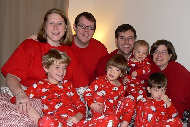 Covering the door in wrapping paper is a great, fun idea! Also, love how you got Anna’s family matching pjs. Good planning!