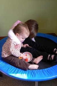 The kids kept jumping on the bed. During a conversation with a friend, I heard myself say, “It’s as if they are getting something from the jumping sensation.” Holly proceeded to tell me that jumping helps her son (who has Aspergers Syndrome) organize his thoughts. That next day, Aldi had an excersise trampoline for sale and we went and got it.