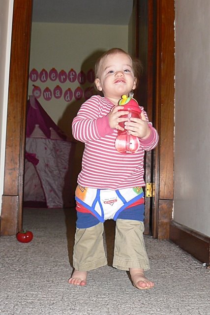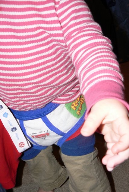 Well, I put the pair on.  There she stood in a pink Henley, khakis and Lightning McQueen undies.  She picked out five more pairs and was ready for pair seven when I put an end to it.  She could barely stand at that point and was walking like a sumo wrestler.  It was so FUN!