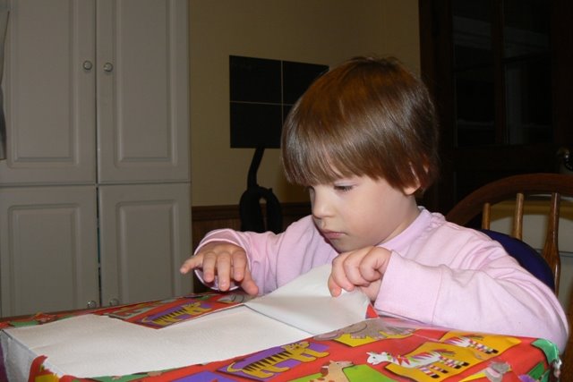 So, we had a strudel from Straubs for breakfast and Little was thrilled. She wore her birthday shirt to her screening and announced that it was, indeed, her birthday shirt to everyone there. (If you are new to the Blue Hutch, you can read more about our birthday shirts here.) We had Chick-fil-a for dinner and played on the playground in the mall and then returned home for cake and presents. Photos following: