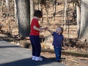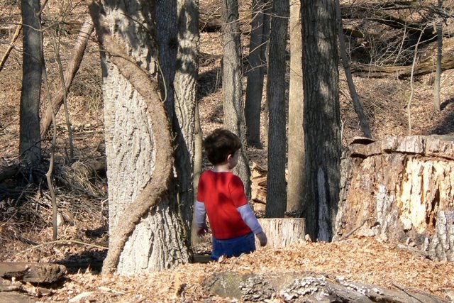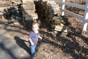 We have had such lovely weather which has meant afternoons spent out in the yard. When the swing set becomes a bit mundane, the kids head down the driveway to Mr. Meyer’s yard. It is soooo much cooler than ours. Mr. Meyers has real woods behind his house and stacks of firewood he chopped himself, and a stack of bricks he plans to line the flower garden with, and a pile of compost that reeks to high heavens, and a deck, gates to crawl under, and, and, and. Seriously, you would think his driveway is Disneyland.
