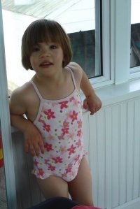 So, Little dealt with the heat on Saturday by wearing her bathing suit around all day long. (Don’t you like her pose?) Bubba had sweat matted hair all afternoon and I took two showers – cold ones. I’m glad May is only four days away.