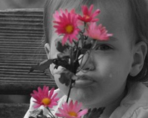 The other night after everyone was in bed, I was looking at different blogs/websites and stumbled across one with a tutorial on removing color from your photo. I have played around with this, but this gal made it SIMPLE. So I practiced a bit on KB’s photo.