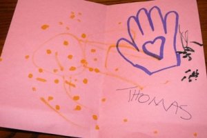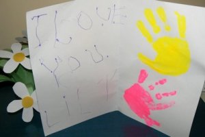 Little brought home this card and flowers – daisies, a favorite.