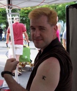 We saw the hair before he left this side of the planet, but were surprised with the tattoo. Did he get that character painted at a carnival?