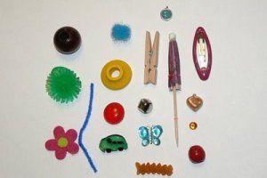 Here are three of the four complete Lookie Loos. The objects are hidden in the rice and we’ll have two in the car on the way down and bring out the other two for the ride home. The plan is to leave the first two with the nieces so they can share the joy.