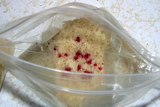 With this in mind, I went shopping earlier in the week for drinks that came in just the right bottle and drank them quickly so that I could wash them thoroughly. This project quickly became a family affair as Little helped me guarantee the bottles were dry with a hair dryer, Bubba found 10 alternate uses for them while awaiting my actual plan for their “lives”, and KB helped dye the rice today. Honey’s role was to provide incessant compliments and he performed that role beautifully!