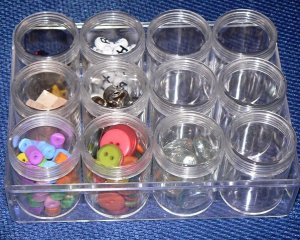 One thing about having “special” children is that what entertains them is also “special”. These are containers of small things to pour into the empty containers. Or count. Or say the letters. Whatever.