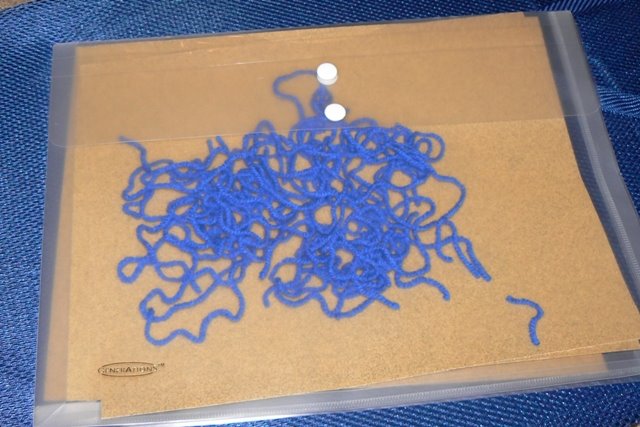 Yarn and sandpaper. It sticks. We made letters and shapes. Good times.