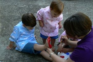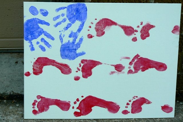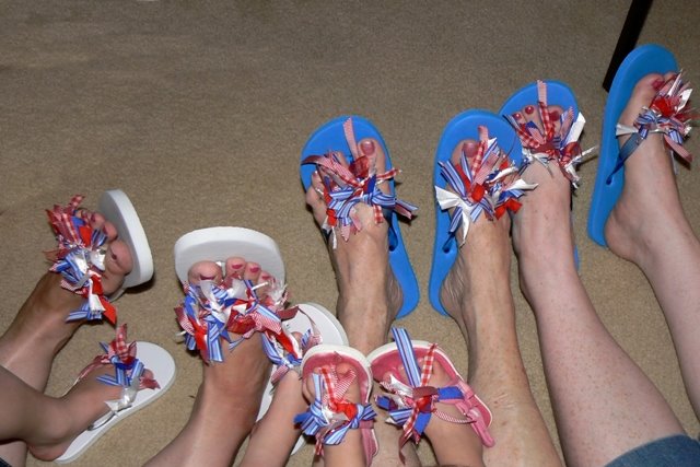 It has almost been a month since the USA’s birthday, but the pictures involve cute kiddies’ feet and therefore must be posted. July 4 is a holiday I don’t know what to do with at this phase of life. We can dress in appropriate colors and eat traditional cookout fare with friends or family (or both) – but our little ones can’t stay up for fireworks and, well, I don’t know. So, I do what I know to do – be crafty.