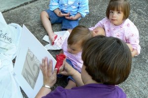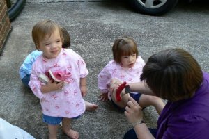 We also made ribbon flip flops for the girls. This was not as big a hit but my nephew and I had a good time, at least. Cole was an EXCELLENT helper because he was very good at making sure the ribbons were well balanced on either side of the shoe.