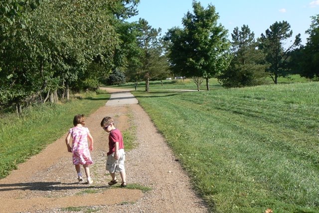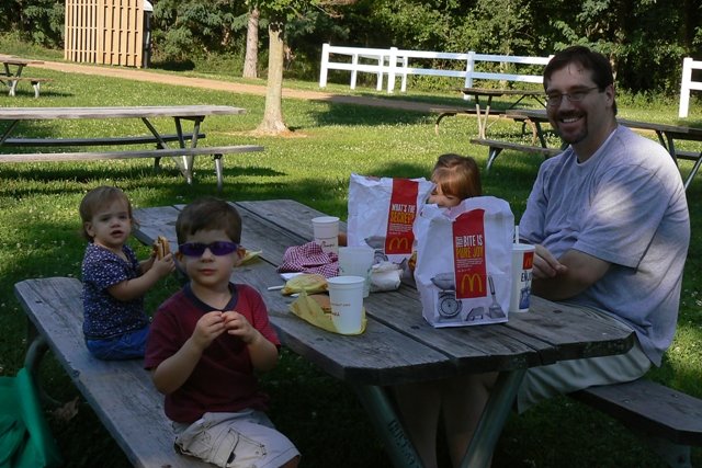 This is the park across the street from our house. Honey went by MickeyD’s on the way home tonight and we walked across the street for a picnic. The weather could NOT have been better, the children were in high spirits, Honey and I got to actually talk . . . it was wonderful.