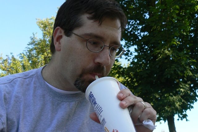 This next picture is just here because Memom says she would like to see more photos of Honey on the blog *wink*. This is Honey drinking his lemonade. Fascinating, eh?